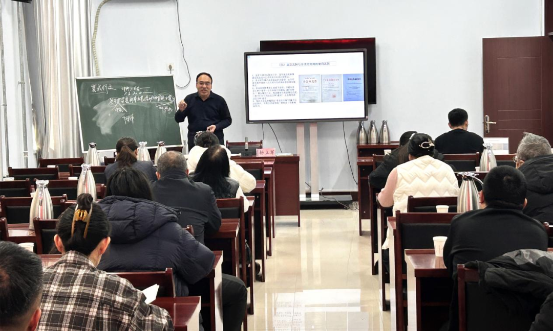 楊立軍針對國有企業辦公室工作特點,結合自己近40年的公文寫作實踐經驗,系統講授了我國公文發展簡史、公文寫作法規、公文文種及格式、公文寫作技巧等公文寫作基礎知識。授課根據新時代建立中國特色現代企業制度的需要,緊密結合縣屬國有企業管理的特點,既有理論支撐,又有案例結合,風格生動風趣幽默,學員現場互動氣氛濃厚。