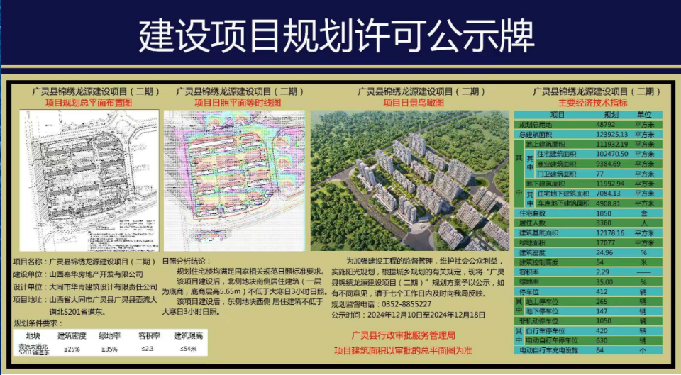 廣靈縣錦繡龍源建設項目規劃許可公示牌